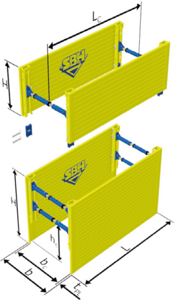 Il blindaggio leggero in alluminio è adatto per piccoli progetti di blindaggio scavo. La costruzione modulare del box è veloce ed economica. Può essere usato anche a cassa chiusa ed essere installato fino alla profondità di 2,40 m.
